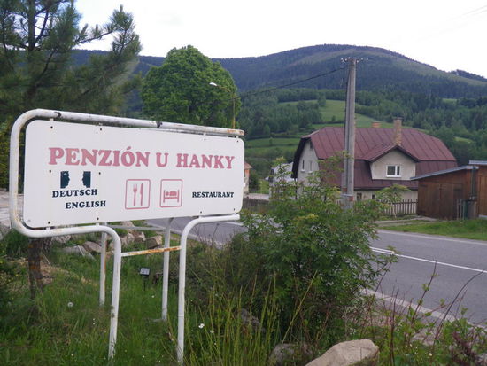Penzion U'Hanky in Telgart ist heute unser Ziel. dazu müssen wir nur im Tal des Hlinec 20 km aufwärts, über die Wasserscheide zum Hron durch den Südrand des Slowakischen Paradieses.