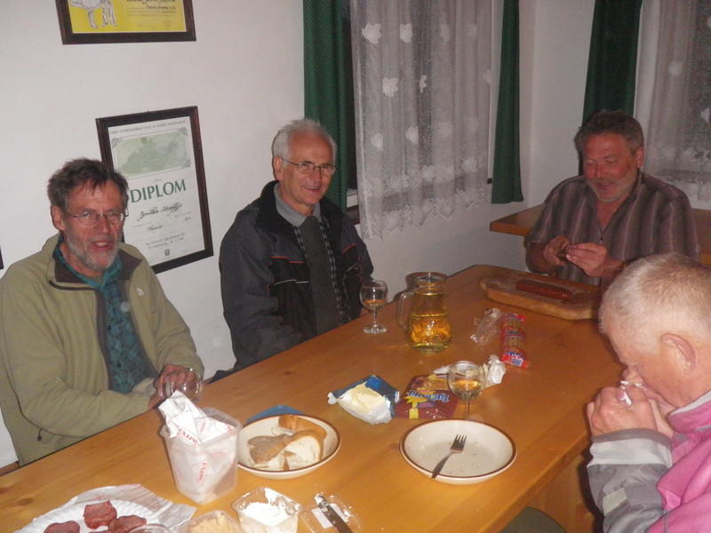 Bei Erich im Haus ist es noch viel zu früh, um ins Bett zu gehen, so lädt er uns noch in sein spezielles Weinzimmer im Keller neben seiner Tischlerwerkstatt ein zu einem guten Veltliner aus seinen Vorräten an Flschenweinen.