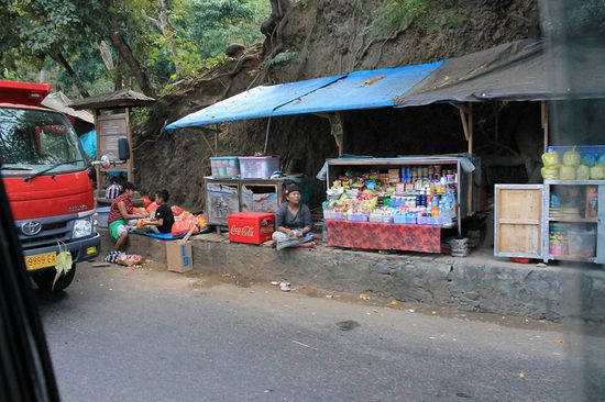 Es folgt ein schnelles Frühstück, ein noch schnelleres Packen unserer sieben Sachen - und dann gehts auch schon los in Richtung Padang Bai. Unser Fahrer entschließt sich nicht das Gebirge zu queren und somit kommen wir in den Genuss der Küstenstraße.