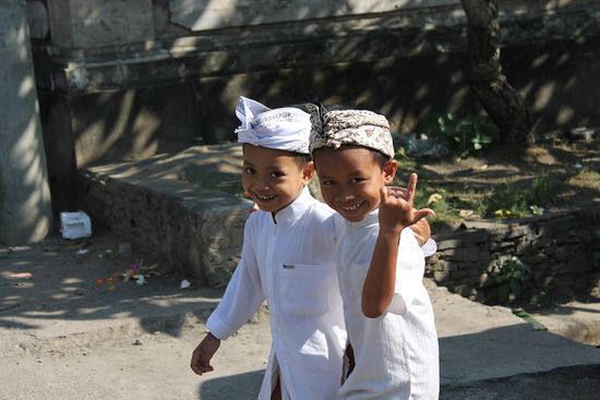 In Padang Bai und in vielen anderen Dörfern im Osten der Insel hallen noch täglich die hinduistischen Gesänge aus den Lautsprechern die Gassen entlang und beinahe täglich schlängeln sich kleine und große Prozessionen ihren Weg.