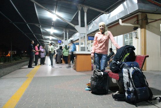 Am Bahnhof angekommen half Opi uns zum Schalter, orderte Tickets nach Singapur - ER beschaffte uns zwei Oberbetten zum Preis von Sitzplätzen (38 Ringgit p.P.) - und überredete schlussendlich noch den Bahnhofsvorsteher, auf unser Gepäck aufzupassen. Am Ende erließ er uns sogar noch 10 Ringgit vom ursprünglichen Fahrpreis und so bezahlten wir 60 Ringgit.