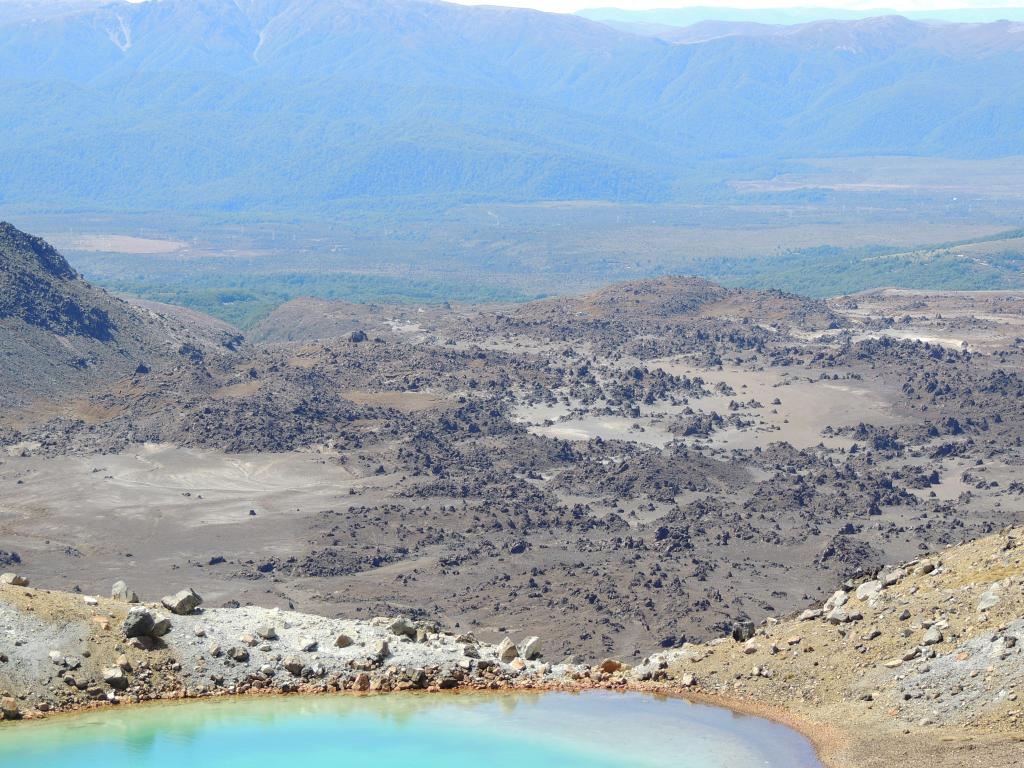 Nach einer ruhigen und erholsamen Nacht im Matratzenlager warteten wir auf das Nachlassen des angekündigten Regens und starteten schließlich um 07.50 bei Nieselregen und dichtem Nebel in voller Montur (Regenhose, Regenjacke und Hut). Die erste Stunde ging leicht ansteigend entlang des Mangatepopo Stream über Lavamassen des Ngauruhoe, eines noch aktiven Vulkans, der letztmalig 1975 ausgebrochen ist. Um 09.00 erreichten wir die Soda Springs und starteten kurz danach in die Devil's Stairways. Steil ging es über das Lavagestein teils am Stein, teils über Holztreppen steil nach oben. Genau zu diesem Zeitpunkt kam die Sonne durch und löste binnen kurzer Zeit alle Nebel und Wolken auf. Ab dann war es den ganzen Tag über schön warm, aber windig bis stürmisch. Bis 10.05 mühten wir uns Schritt für Schritt nach oben, Eva konnte sich nicht mit den Stiegen anfreunden. Nun folgte ein flaches Wegstück, aber ein atemberaubendes: der Southern Crater. Dies ist ein Explosionskrater, der teilweise mit Lava gefüllt ist. Wir gingen tatsächlich 20min lang durch einen echten Vulkan mittendurch!!! Mit dem verlassen des Southern Craters auf etwa 1.730m ging es nochmals etwa als 150 Höhenmeter steil bergauf. Oben erwartete uns DAS Panorama des Red Crater und seiner "fumaroles" (aktive Vulkanauslässe/Rauch aus dem Erdinneren). Schwefel ist hier deutlich zu riechen und zu sehen. Von nun ab sollte es mehr oder weniger nur mehr bergab gehen, wir verließen 1.868m Seehöhe. Nach einer kurzen Verschauf- und Fotopause führt uns der ebenso steile Abstieg durch Lavasand zu den Emerald Lakes. Dies sind drei Vulkanseen, die uns bereits am Kamm des Red Crater entgegenleuchteten. Sie sind wunderschön und schimmern in allen Farben. Die nächsten 2 ½ Stunden durchwanderten wir MORDOR, die ersten 700m davon in einer "Volcanic Hazard Zone", in der ein zügiges Durchwandern ohne Rasten wegen möglicher Eruptionen gefordert ist. Es war unbeschreiblich diese Landschaft in die Verfilmung von "Herr der Ringe" integriert wurde ohne sie zu verändern. Es schaut tatsächlich so aus dort. Hinter jedem Felsen erwarteten wir Orks, einzig ein Zeichen ihrer Anwesenheit konnten wir fotografieren (siehe Bilder unten). Wir marschierten durch steinwüstenartige Landschaft in der prallen Sonne, es gibt kaum Gräser geschweige denn Schattenspender dort. Um 13.50 erreichten wir die Oturere Hütte auf 1.368m. Dort gab es bei der Mittagsraste eine Minestrone zur Stärkung. Weitermarsch war um 15.00. Geprägt war dieses Stück des Marschwegs von vielen Gräben und nervenaufreibendem "runter - rauf - runter". Besonders am Ende der Strecke wurde uns bei einer etwa 100m tiefen Geländezacke, die hinunter, hinauf und wieder hinunter zu gehen war, alles abverlangt. Erschöpft, aber stolz und glücklich, erreichten wir um 18.05, also nach 10h 15min Bruttomarschzeit (inklusive Pausen und Fotografieren), unser Etappenziel, die Waihohonu Hütte. Ein köstliches Abendessen ("Astronautennahrung" Beef Curry mit Reis) beendete bald diesen anstrengenden aber wunderschönen Tag.