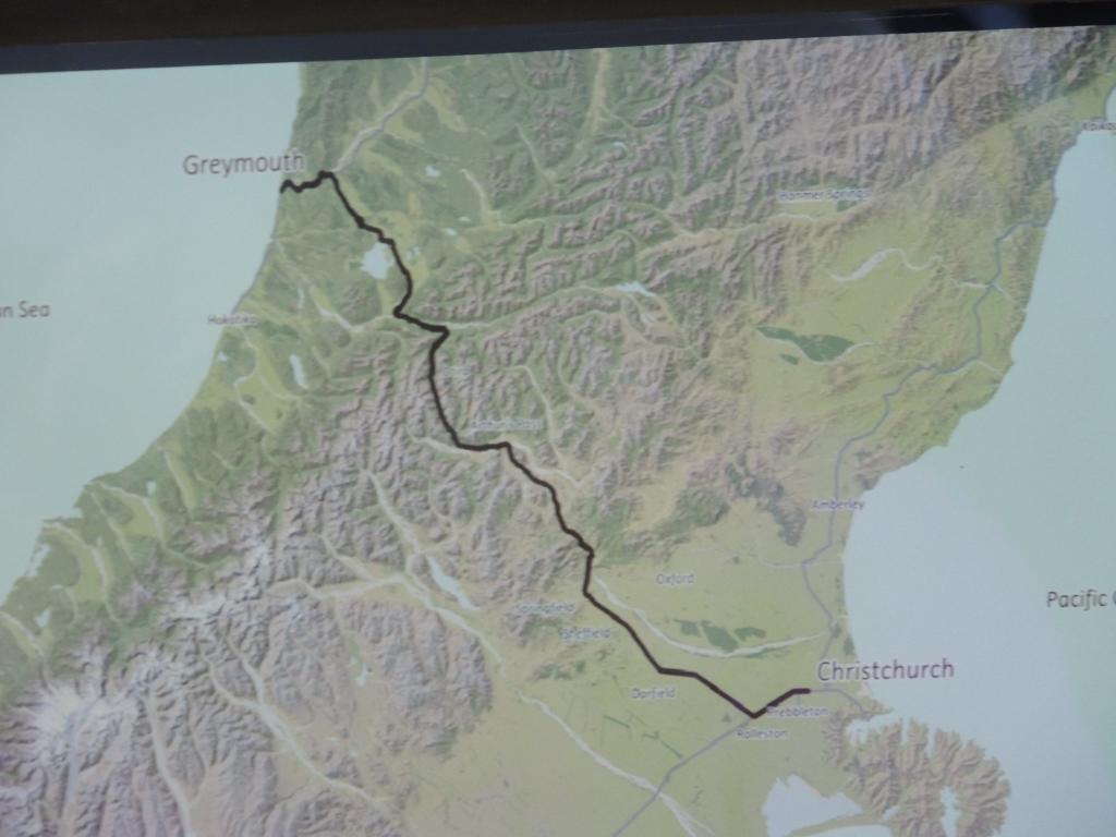 Gleich in der Früh ging es mit dem motel-eigenen Shuttle zum Bahnhof. CheckIn im "Tranzalpine", der pünktlich um 08.15 Christchurch verließ. Die viereinhalb stündige Fahrt im modernen Panoramazug führte uns durch die Canterbury Plains, das größte zusammenhängende Flachland Neusselands, durch die Ausläufer der Southern Alps (mit großartigen Schluchten, Tunnels und Viadukten), durch breite Flusstäler (Waimakariri River, Bealy River), über den Ather's Pass, durch einen 8,5km langen Tunnel und vorbei am Lake Brunner nach Greymouth. Diese Stadt (etwa 10.000 Einwohner) ist die größte Menschenansammlung der Westküste der Südinsel.