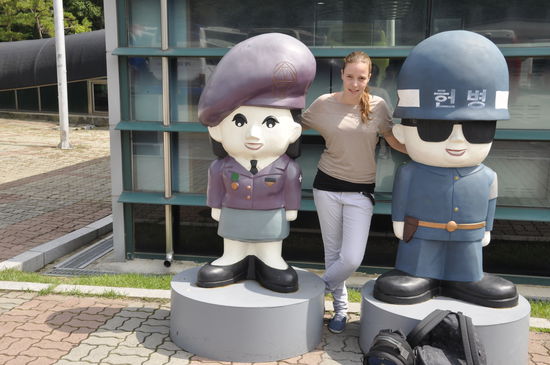Wir besichtigten den 3rd infiltration Tunnel, krabbelten ihn die 350m nach unten in 70m Tiefe und 600m bis zum nordkoreanischem Sektor. Dort war ein quadratisches Loch, man sah noch ein Stück nordkoreanischen Tunnel und dann wieder zurück.