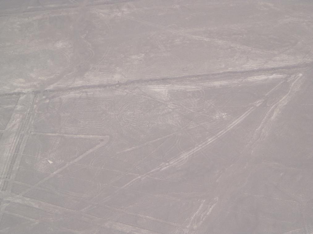 Am Vortag hatte ich im Hostel den Trip bzw. den Flug für die Nazca-Lines gebucht. Nazca ist eine kleine Stadt etwa 2.5 Stunden Busfahrt von Ica entfernt. Um 14.00 Uhr, also zwei Stunden nach meinem ungemütlichen Erwachen, gings dann auch schon wieder los. Üblicherweise ist die Verhandlung des Preises nicht so mein Ding. Diesmal hab ichs aber geschickter als auch schon angestellt. Nachdem mir ein Typ vom Hostel ein Angebot gemacht hatte, bin ich zu einer Reiseagentur und hab mich dort über den Preis informiert. Dieser war etwa 20% Prozent tiefer. Danach bin ich also wieder zurück zum Typen vom Hostel und hab neu verhandelt. Er hat mir dann das gleiche angeboten, aber noch inklusive aller Transfers und Hostelübernachtung in Nazca. Im Hostel in Nazca angkommen, hab ich auch gleich den Preis von ein paar anderen mitbekommen. Diese hatten rund 70 Soles, also rund 25 Franken mehr bezahlt. So läuft das in Südamerika. Verhandelst du nicht, bist du selbst Schuld. Am nächsten Morgen gings dann um 8.00 Uhr vom Hostel los. Bei den Nazca-Lines handelt es sich um Abbilder (sogenannte Scharrbilder) im Sand von beispielsweise Affen, Spinnen, Kolibris und so weiter. Es gibt angeblich über 800 dieser Symbole, aber nicht alle kann man vom Flugzeug aus sehen, da viele zu klein sind. Einige Figuren sind aber bis zu mehreren Hundert Meter gross, die deshalb nur von einem Flugzeug auszumachen sind. Dies ist auch der Grund, wieso man die Scharrbilder erst im Jahr 1924 entdeckt hat, als erstmals kommerzielle Flüge über diesem Gebiet stattgefunden hatten. Entstanden sind sie von 800 bis 200 v.Chr. Der Zweck ist jedoch immer noch unklar, aber man vermutet, dass sie insbesondere Fruchtbarkeitsritualen dienten. Etwas ärgerlich war, das wir rund zwei Stunden am Flughafen warten mussten. Der Flug dauerte ca. 30 Minuten, und die Scharrbilder waren ziemlich beeindruckend. Der Flug mit dieser kleinen Maschine ziemlich... ja sagen wir mal spannend. Da spürt man das Fliegen noch richtig, ungleich zu den meisten Linienflügen. Meine kleine Kamera war mit dem Fotoschiessen leider ziemlich überfordert und oft war auf den Fotos nur Sand zu erkennen. Hab trotzdem ein paar eingefügt, und hoffe, ihr könnt was erkennen.