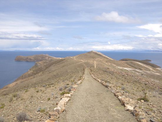 Am gleichen Abend nachdem Jeremie und ich uns von Jess verabschiedet hatten, gings für uns weiter Richtung Bolivien. Unser Fernziel: die Isla del Sol. Dafür mussten wir zuerst sechs Stunden Busfahrt nach Puno, das noch in Peru liegt, auf uns nehmen. Um 4.00 Uhr nachts sind wir dort angekommen. Drei Stunden später gings weiter mit dem Bus nach Copacabana, das am Titicaca-See liegt. Auf dieser Busfahrt passierten wir auch die Grenze nach Bolivien. Das ging ziemlich flott... aussteigen, Geld wechseln, in Peru ausstempeln, in Bolivien einstempeln und wieder in den gleichen Bus einsteigen. Ein Riesen Touristenauflauf, so was hab ich noch an keiner Grenze gesehen. Gesamthaft dauerte die Fahrt nach Copacabana (von dem der Strand in Bolivien seinen Namen trägt) ca. vier Stunden. Um etwa 12.00 Uhr sind wir dort eingetroffen. 1.5 Stunden später waren wir schon auf dem Boot Richtung Isla del Sol. Jeremie und ich hatten uns entschieden eine Nacht im Süden der Insel zu verbringen. Das dort anliegende Dorf heisst Yumani. Auf der ganzen Insel leben nur ca. 2'000 Personen. Die Insel spielt in der Mythologie der Inka eine grosse Rolle, da der Gott der Inka seinen Sohn (der erste Inka) und dessen Schwester (und gleichzeitig seine Frau) dort herabgelassen haben soll. Somit ist die Isla del Sol die Wiege der Inka. Die Bootsfahrt zur Insel dauerte nochmals ca. 2.5 Stunden. Nach dem ziemlich anstrengenden Aufstieg zum Dorf (da mit unserem ganzen Gepäck, das bei mir knapp 30 kg wiegt), gönnten wir uns zuerst mal ein Bierchen und konnten ein herrliches Panorama geniessen. Die Sonne gab an diesem Tag Vollgas. Am Abend kam dann aber ein ziemlicher Sturm auf und auf dem Heimweg vom Nachtessen wurden wir ziemlich durchnässt. Am nächsten Tag stand die Wanderung in den Norden aufm Programm. Das Wetter war leider nicht mehr ganz so toll, blieb aber trocken. Die Wanderung dauerte rund drei Stunden und es gab herrliche Landschaftsbilder zu geniessen. Das Zwischenziel waren die Ruinen Chincana. Von dort aus gings weiter zum Dorf Cha'llapampa, von wo aus wir mit dem Boot wieder in den Süden der Insel fuhren. Dort angekommen wieder kurz rauf nach Yumani zu unserem Hostel, unser Gepäck abholen, um danach wieder auf das Boot aufzuspringen. Kurz vor Sonnenuntergang sind wir dann wieder in Copacabana angekommen, wo wir für eine Nacht blieben. Am nächsten Tag gings weiter nach La Paz, wo ich mich gerade noch befinde (obwohl nicht mehr lange). Dazu aber nächstes Mal mehr.