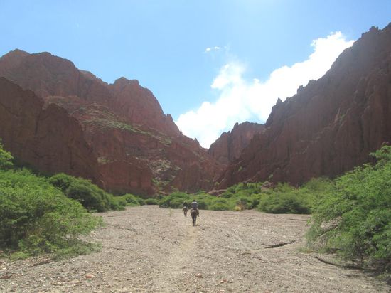 Die Fahrt dauerte sollte ca. sechs bis sieben Stunden dauern. Wir hatten aber zweimal eine Panne und somit zwei Stunden Verspätung. War aber nicht weiter schlimm. Ansonsten wären wir nämlich mitten in der Nacht um vier Uhr angekommen. Somit kamen wir pünktlich zum Sonnenaufgang an. Tupiza ist eine verschlafenes Nest mit ca. 25'000 Einwohnern. Die Stadt ist ein Ausgangspunkt für die berühmte Salar de Uyuni Tour (die andere ist Uyuni selbst, sowie San Pedro de Atacama auf der chilenischen Seite). Aber auch die Landschaft um Tupiza ist wunderschön und sorgt mit seinen rotgefärbten Felsen und Steppen für eine tolle Western-Athmosphäre. Auch habe ich dort erfahren, dass sich Butch Cassidy und Sundance Kid, die zwei berüchtigten US-Outlaws, hier eine Zeit lang aufgehalten hatten, bevor sie Anfangs zwanzigstes Jahrhundert vom bolivianischen Militär gestellt und erschossen wurden. Deshalb haben wir am gleichen Tag den Triathlon um Tupiza gebucht. Dieser beinhaltet eine Jeep Tour, eine kleine Wanderung sowie ein Ausritt mit dem Pferd. Das Highlight war dabei der Ausritt. Die Pferde waren diesmal einiges grösser als noch in Kolumbien in der Kaffeezone. Sian brachte einiges an Reitstunden mit sich und war deshalb um Längen sicherer zu Ross als ich. Ich musste mich von ihr aufklären lassen, dass es drei verschiedene Gangarten gibt. Schritt, Trab und Galopp. Schritt ist dabei mit Sicherheit die angemessenste Gangart für mich. Sian wollte immer galoppieren, da Trab für den Reiter einiges unbequemer ist. Zum Glück hat sich mein Ross immer vor ihres geschoben, sodass sie nie gross zum galoppieren kam. Ich selbst hab mein Ross immer gezügelt und zum Schritt gezwungen. Eile mit Weile. Die Landschaft war atemberaubend. Auf dem Rücken des Pferdes hab ich mich deshalb wie John Marston, der Cowboy von Red Dead Redemption gefühlt (trotz des langsamen Tempos)... Irgendwie hatte ich am Vortag etwas gegessen, dass mir enorme Blähungen bescherte. Aber auch mein Hottehü war nicht gerade ein Kind von Traurigkeit. Nach hartem Kampf musste ich mich schlussendlich geschlagen geben, eins zu null für mein Ross. Bevor wir wieder am Anfang unseres Ausritts angekommen sind, hat mich dann Sian doch noch im Galopp überholt. Mein Pferd liess sich das natürlich nicht gefallen und ist seinerseits in Galopp verfallen. Das war etwas beängstigend, da ich ziemliche Mühe hatte, das Gleichgewicht zu wahren um nicht vom Rücken zu fallen. Zwei zur Null für mein Ross. Ich bin mir ziemlich sicher, dass ich meine Reiterschuhe nach Südamerika wieder an den Nagel hängen werde. Am späten Nachmittag sind wir dann wieder in Tupiza angekommen. Für den nächsten Tag hatten wir bereits die Salar de Uyuni Tour gebucht. Diese dauert gesamthaft vier Tage. Man hat dabei verschiedene Optionen. Entweder man beendet sie in Uyuni, man kehrt nach Tupiza zurück oder man geht direkt nach San Pedro de Atacama, Chile. Ursprünglich wollte ich die Tour in San Pedro beenden, aber die nette Dame vom Tour Büro hat mich überzeugt, dass es in San Pedro nicht viel zu sehen gibt und die Grenzüberquerung nach Argentinien einfacher von Bolivien als von Chile aus ist. Also haben Sian und ich uns entschieden, nach der Tour wieder nach Tupiza zurückzukehren und dann nach Argentinien zu reisen. Über die Salar de Uyuni Tour erfahrt ihr mehr im separaten Artikel.