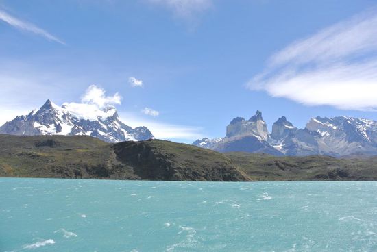 Am Tag nach dem zweiten Besuch beim Perito Moreno hab ich mich auf den Weg nach Chile, genauer gesagt Puerto Natales, gemacht. Die Fahrt sollte etwa fünf Stunden dauern... hat dann aber sieben Stunden gedauert. Die Grenzüberquerung nach Chile ist bekanntlich ziemlich mühsam, da es verboten ist jegliche tierische Produkte einzuführen und das ganze Gepäck gecheckt wird. Und da vor uns noch ein grosser Bus an der Grenze eingetroffen war, ging das ganze etwas länger. Wie schon im letzten Artikel angesprochen, mein Ziel war den W Trek im Nationalpark Torres del Paine zu machen. Auf der Busfahrt habe ich Antoine, einen Franzosen, kennengelernt, der auch alleine reist und der das gleiche vorhatte. Also haben wir beschlossen den Trek zusammen durchzuführen. Am Abend sind wir in Puerto Natales angekommen. Am darauffolgenden Tag galt es uns für den Trek vorzubereiten. Anders als bei den restlichen Treks, die ich in Südamerika gemacht hatte, war dieser Trek nicht geführt. Am darauffolgenden Tag galt es deshalb zuerst mal die ganze Ausrüstung (Zelt, Schlafsack, Kochutensilien) sowie die Verpflegung aufzutreiben. Das war nicht so schwierig, da der Inhaber unseres Hostels solche Ausrüstung vermietet. Wir mussten also nur noch um die Verpflegung kümmern. Aber es ist gar nicht so einfach, wenn man so einen Spitzenkoch wie ich ist. Ich hab deshalb insbesondere Brot, Fleisch, Käse, süsse und salzige Crackers, Schokolade, Kaffee und Suppe eingekauft. Ah ja und einen Baileys... was fürs Gemüt, wenns wirklich kalt werden würde. Wasser ist kein Problem, da in von jedem Gewässer dort trinkbar.