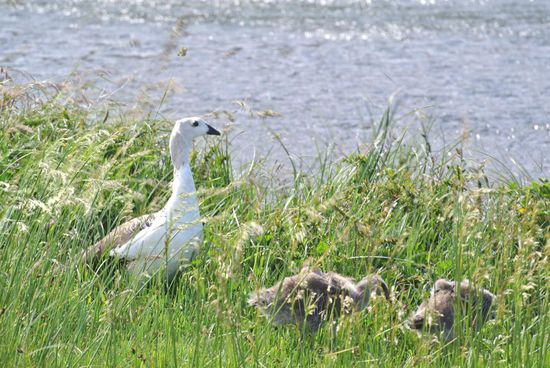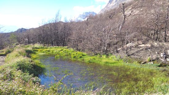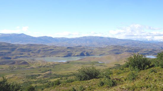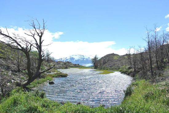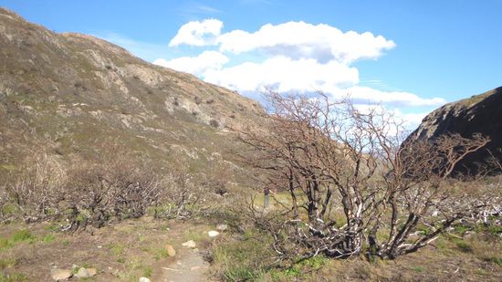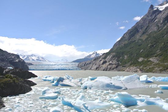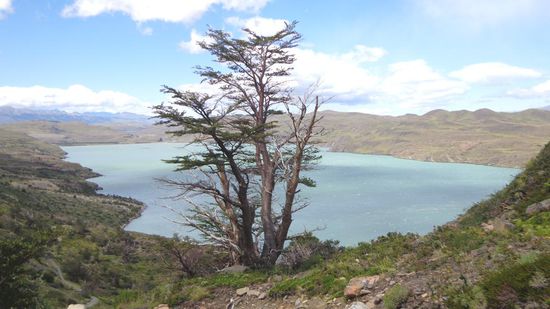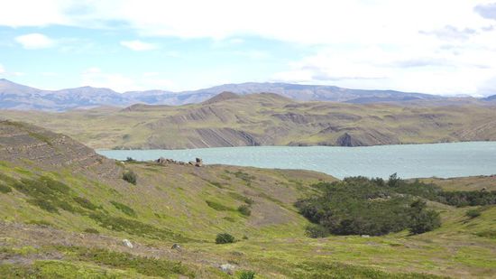 Wir haben uns also tags darauf in den Nationalpark aufgemacht. Das bedeutete eine Busfahrt von rund zwei Stunden und eine Fahrt mit der Fähre zum westlichen Teil. Wir hatten uns wegen des Wetters entschieden, unseren Trek dort zu beginnen. Der Trek heisst W, da man drei verschiedene Täler entlang wandert, und es auf der Karte deshalb eine Form wie ein W hat. Der erste Tag war zum vergessen. Zuerst ging auf der Fähre meine Kamera kaputt (das Objektiv wollte nicht mehr schliessen). Tolles Timing! Der Wind war enorm stark und der erste Campingplatz kaum geschützt. Nachdem wir das Zelt endlich aufgestellt hatten, haben wir dem Mittagessen merken müssen, dass in der Zwischenzeit aufgrund des starken Windes eine Zeltstange gebrochen (gleich zweifach!!!) ist und die Aussenhülle richtiggehend zerfetzt hat. Toller Anfang! Für die Nacht war zudem Regen angesagt, weswegen wir eine andere Lösung finden mussten. Bei fast jedem Campingplatz in Torres del Paine hats auch ein Hostel. Wir haben deshalb da nachgefragt, obs noch freie Zelten zu vermieten oder freie Betten zur Verfügung hat. Leider nein... alles schon ausgebucht. Ziemlich angepisst haben wir uns deshalb auf unseren ersten Marsch gemacht und somit das Problem der Übernachtung auf später verschoben. Die Wanderung zum Gletscher Grey ist rund 11 km. Hin und zurück also 22 km bzw. rund sieben Stunden gemäss Routenplan. Die Landschaft war enorm schön. Der Wind blieb den ganzen Tag über so stark wie am morgen schon. Insbesondere über die Hügelkuppen hats uns manchmal fast weggeweht. Ich musste ein paarmal meinem Cap nachrennen. Auf dem ersten Aussichtspunkt des Grey Gletschers war der Wind so stark, dass es mir die Sonnenbrille vom Gesicht weggeweht hat. Also der dritte Bruch am gleichen Tag. Der Grey Gletscher war schön, aber nach Perito Moreno nicht mehr so eindrücklich. Die Landschaften und insbesondere die diversen Seen während der Wanderung waren aber sehr schön. Auf dem Rückweg hab ich mir gedacht, dass mir eine kaputte Kamera sowieso nichts mehr nützt und ein paarmal kräftig draufgeschlagen. Und siehe da... das Objektiv konnte wieder eingeführt werden. Immerhin ein Lichtblick. Die Wanderung war aufgrund des starken Windes auch ziemlich anstrengend. Wir haben gedacht, wir könnten das ganze in fünf Stunden abspulen, haben aber rund sechs gebraucht. Wieder im Campingplatz angekommen, mussten wir noch eine Lösung für unser Übernachtungsproblem suchen. Irgendwo auf dem Boden in der Schutzhütte wollten sie uns nicht nächtigen lassen. Deshalb hab ich einen Park-Ranger gefragt, was er uns vorschlagen würde. Dieser hat dann Herz gezeigt und uns in der Zentrale der Rangers (ein grosses Zelt mit Holzboden) übernachten lassen. Wir waren die ersten, aber nicht die letzten. Noch einige andere hatten das gleiche Problem. Schlussendlich waren sicher etwa zehn Personen im Zelt. Und der Wetterbericht hat nicht gelogen, in der Nacht hat es sehr stark geregnet. In unserem Zelt wären wir ziemlich aufgeschmissen gewesen.