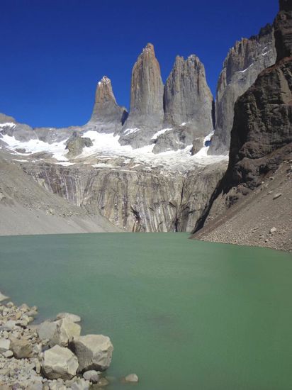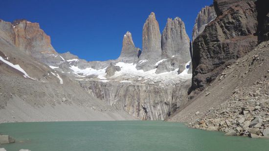 Der dritte Tag ist dann ziemlich schnell erzählt. Für einmal ist alles planmässig verlaufen. Wir sind etwa um 9.00 Uhr losmarschiert. Gemäss Routenplan sollte die Wanderung hin und zurück etwa zehn Stunden dauern. Wir haben das ganze gerade mal in fünf Stunden absolviert. Das letzte Stück zu den las Torres del Paine (was übrigens soviel heisst wie Türme des blauen Himmels) war ganz schön steil. Ich hab schon Leute gehört, die das ganze nicht so imposant fanden. Ich persönlich fands ziemlich atemberaubend. Die Bilder fangen das ganze leider nicht ganz so ein. Schön wars allemal. Schaut und urteilt selbst!