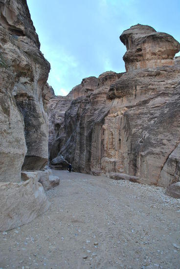 Zaid war superpünktlich da, ich auch. Als Petra-Tourguide scheint man nicht schlecht zu verdienen, denn ich wurde in einer relativ neuen Mercedes E-Klasse durchs menschenleere Wadi Musa gefahren und stieg vor dem Besucherzentrum aus. Es war noch vor 7.00 Uhr morgens und ich konnte die paar anderen Touris am Ticketschalter an einer Hand abzählen. Das Ticket war in meiner Tour inkludiert, daher weiss ich nicht genau, was es kostet. So um die 55 EUR, glaube ich. Aber das ist es sowas von wert ! Im Ticketpreis inbegriffen ist, dass man sich ab Eingang per Pferd die ca. 800 m zum Siq, bewegen darf. Machte ich nicht, ich wollte laufen, denn bereits auf den ersten 800 m gibt es schon was zu gucken und fotografieren. (Übrigens hat man auch noch auf dem Weg hinaus, die Gelegenheit, die Pferdenummer durchzuziehen, allerdings kostet das dann ein paar Dinar, 5 oder so... und es ist weitaus empfehlenswerter, das beim Verlassen von Petra zu machen, weil dann geht´s bergan und man hat zu diesem Zeitpunkt bereits etliche Kilometer in den Beinen, nur so als Tip am Rande...)