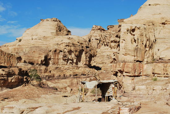 Zaid erzählt die Geschichte Petras sehr eindrucksvoll und plastisch, während wir uns durch den Siq bewegen. Ich bin einfach nur überwältigt ! Das ist sowas von erstaunlich hier ! Ich fotografiere wie eine Irre und denke mal wieder "womit hast du das verdient, das hier erleben zu dürfen" ? Um diese Tageszeit begegnen einem hauptsächlich Beduinen, denn die "betreiben" Petra eigentlich. Zwischen 1968 und 1985 wurden alle Beduinen, die bis dahin noch in Petra lebten, zwangs-umgesiedelt, hauptsächlich nach Wadi Musa (was soviel wie Moses-Tal bedeutet). Da ist es nur fair, dass die Beduinen bis heute als Guides, Kamel- und Eselstreiber, Souvenirshopbetreiber und Gastronomen in Petra tätig sein dürfen und damit ihr Auskommen haben. Ein freundliches und erstaunlich unaufdringliches Volk. Na klar, wird man als Tourist angesprochen, aber sehr nett. "Tea ? Camel-ride ? Donkey-Taxi ? "Need guide ?" "Souvenirs, postcards, anything ?" Sagt man höflich nein, danke, ist die Sache erledigt und man wird in Ruhe gelassen. Nimmt man eine der angebotenen Leistungen in Anspruch oder kauft/isst/trinkt man etwas, sind die Preise sehr moderat, selbst ohne langwierige Verhandlungen.