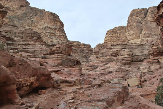 ...tah dah ! The monastery, das Kloster oder auf arabisch Al Deir. Weit größer, als das Schatzhaus. 45 m hoch und 50 m breit. Weil einige Kreuze an den inneren Wänden zu sehen sind, hat man vermutet, dass dieses Gebäude zu byzantinischer Zeit als Kirche genutzt wurde, daher der Name. Aber höchstwahrscheinlich war auch dieses Monument ein Grab zu Nabatäerzeiten.