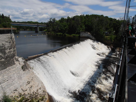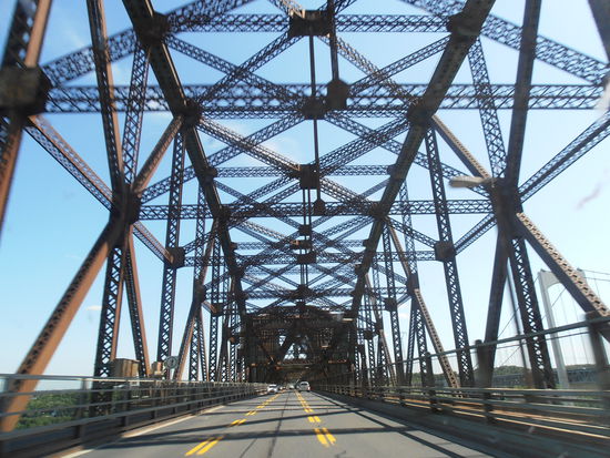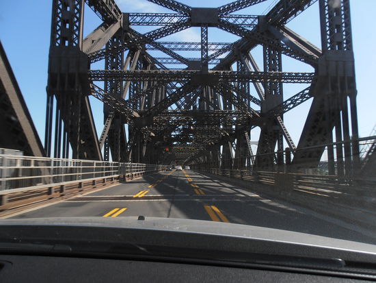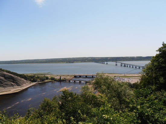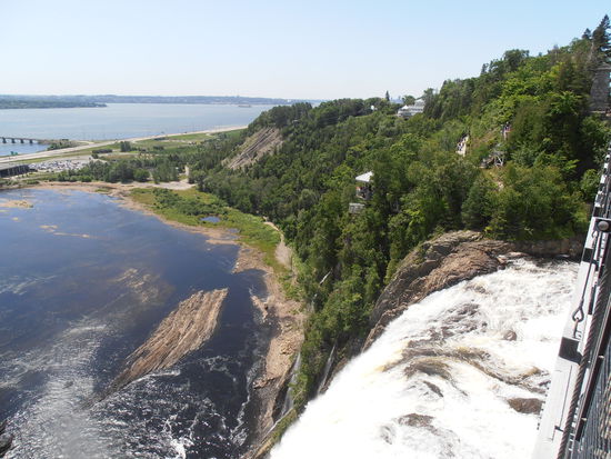 Von Levi, einem Ortsteil von Quebeck, getrennt durch den Sankt Lorenz Strom, fahren wir über die Brücke "Pont de Quebeck" Richtung Montmorency Wasserfälle. Diese aus Stahlträgern erbaute Brücke hat eine tragische Geschichte, bevor sie 1919 eingeweiht werden konnte. Der Bau begann im Jahre 1904 und stürzte bereits vor Fertigstellung aufgrund von Schluderei und Selbstüberschätzung im Jahre 1907 zum ersten Mal ein und begrub 75 Menschen unter sich. Ein neuer Bau-Ingenieur konnte es offensichtlich auch nicht besser und schafft einen zweiten Einsturz 1916 mit 13 Toten. Erst im Jahre 1919 konnte die Brücke endgültig in Betrieb genommen werden, weitere Zwischenfälle sind nicht bekannt.