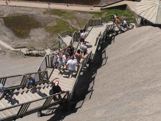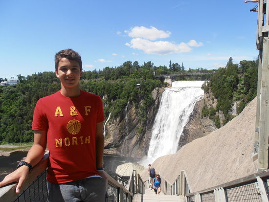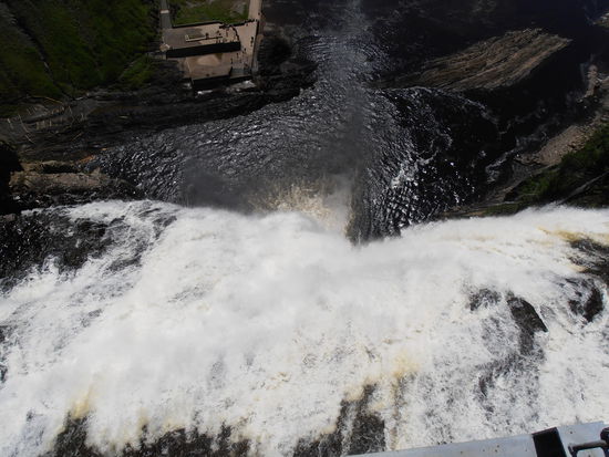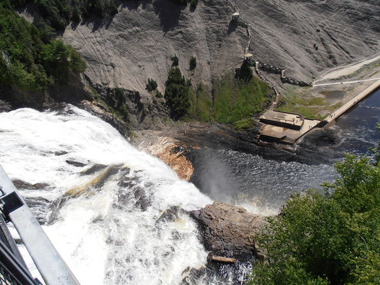 Nachdem wir gestern in Kultur gemacht haben, waren heute sonstige Sehenswürdigkeiten im Programm. Zunächst einmal ging es zu den Montmorency Wasserfällen am Stadtrand von Quebeck .Der Montmorency-Fall befindet sich 13 Kilometer nordöstlich der Provinzhauptstadt Quebeck gegenüber der Südwestspitze der Île d'Orléans, an der Grenze zur Gemeinde Boischatel. Der Wasserfall bildet die Mündung des Flusses Montmorency und stürzt über eine Felswand 83 Meter in den Sankt-Lorenz-Strom. Damit ist er der höchste Wasserfall der Provinz Quebeck und rund 30 Meter höher (hört, hört!!) als die Niagarafälle. Beim Überqueren der Wasserfälle über eine Hängebrücke standen mir schon einige Schweißperlen auf der Stirn und ich war ehrlich gesagt froh, ohne größeren Aufenthalt auf der anderen Seite angekommen zu sein. Wer aber glaubt, das Vergnügen sei damit zu Ende gewesen, hat sich getäuscht.... Es stand noch der Abstieg über eine Holztreppe bevor. Die Fotos werden das ihre dazu sagen. Die Hochfahrt mit der Gondel war dagegen ein Kinderspiel.