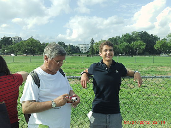 Um das Weiße Haus zu besichtigen, hätten wir den gesamten Weg wieder zurückgehen müssen und so beschlossen wir die Metro zu nehmen, da sich die Temperaturen auf Richtung 100° Fahrenheit zu bewegten. Leider haben wir Michell und Barack Obama nicht angetroffen, man munkelt, er habe sich zum Pokerspielen mit Mich Ronmey getroffen (Späßle g'macht). Aber zumindest konnte Felix schon einmal üben, wie es sich anfühlt, im Oral-Office eine Rede zu halten.