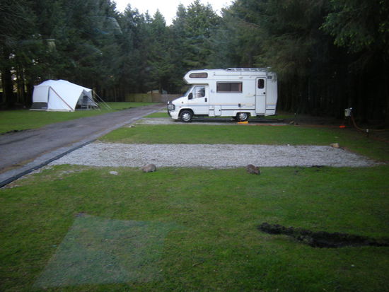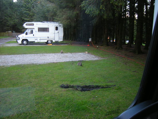 Unterwegs verlieren wir unsere Mitreisenden, weil sie in einem Kreisel eine andere Ausfahrt nehmen zum Tanken. Auf unserem Weg gibt es leider keine Parkplätze, also müssen wir weiter fahren. Gerne würden wir in Bodmin auf den Campingplatz fahren, unser Navi findet ihn nicht, ausgeschildert ist er nur einmal, dann nix mehr. Als wir einen Supermarkt mit Tankstelle sehen halten wir an, um uns nach dem Weg zu erkundigen. Ein freundlicher Brite will uns hinbringen. Wir sollen mal hier stehen bleiben, er fährt die Strecke ab und holt uns dann. Ich glaube nicht wirklich, dass wir ihn noch mal sehen. Doch tatsächlich... leider ist der Platz geschlossen oder er hat ihn auch nicht gefunden. Wir bedanken uns wortreich für seine Bemühungen. Dann fahren wir weiter. Hinter Bodmin finden wir ein Schild zu einem Campingplatz am Collyford Lake mitten im Wald für 14 Pf. Hasen hüpfen uns Womo herum, sehr idyllisch. Ich versuche unsere Mitfahrer anzurufen, doch sie melden sich nicht. Da bleibt mir nur eine SMS zu schicken. Stunden später kommt eine Antwort. Sie sind ein Stück weiter auf einem Campingplatz in der Bude-Bay.