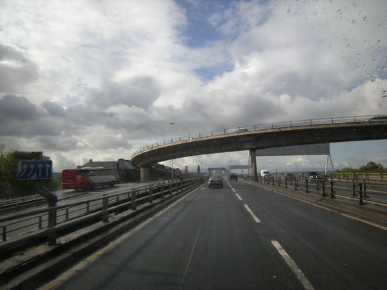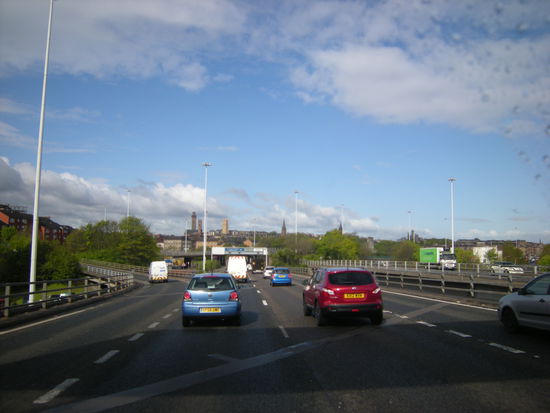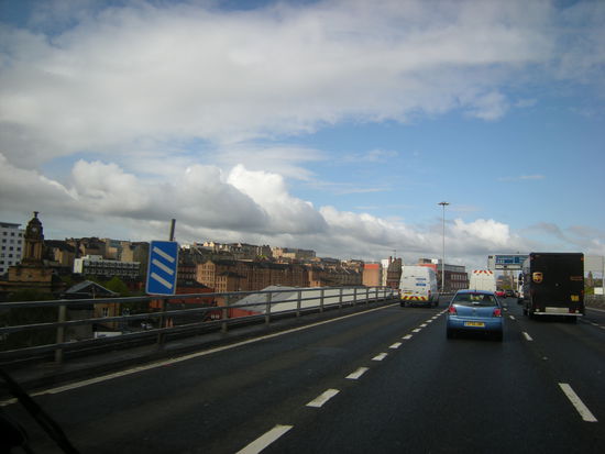 Ich bin aber froh, dass wir gestern Abend die 3 km nicht mehr gelaufen sind, richtig gelohnt hat sich das nicht. Aber Bilder wegen der Nostalgie...weiter über die Autobahn mit ungeheurem Verkehr mitten durch Glasgow. Die City of Glasgow ist mit etwa 593.000 Einwohnern die größte Stadt Schottlands und nach London und Birmingham die drittgrößte Stadt des Vereinigten Königreichs. Glasgow gilt im Gegensatz zur schottischen Hauptstadt Edinburgh als "Arbeiterstadt". Der Verkehr ist unbeschreiblich. Straßen laufen übereinander und nebeneinander, gehen sechsspurig zusammen und auseinander. Wir verlassen uns blind auf unser Navi und es klappt.