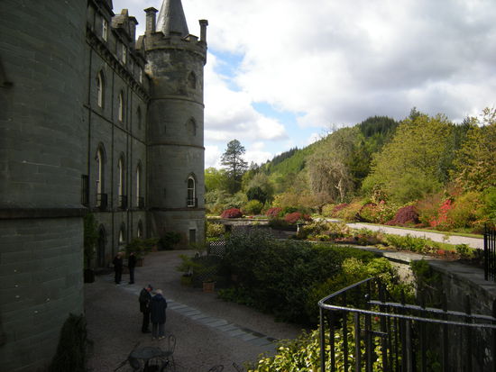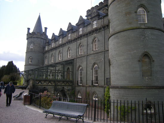 Gegen elf erreichen wir Inveraray. Eine Brücke wie ein Buckelwal erhebt sich vor der Stadt, einspurig mit kolossaler Steigung. Sofort finden wir einen Parkplatz für 60 Pence per Stunde. Holländer mit dem gleichen Womo wie wir fahren direkt nach uns ein. Wir haben ein nettes Gespräch. Dann laufen wir zum Castle und machen eine Besichtigung. Wunderschön eingerichtet und immer noch bewohnt vom Duke und seiner Familie. Auf dem Parkplatz spielt ein Dudelsackspieler gegen eine Spende und empfängt die Busladungen.