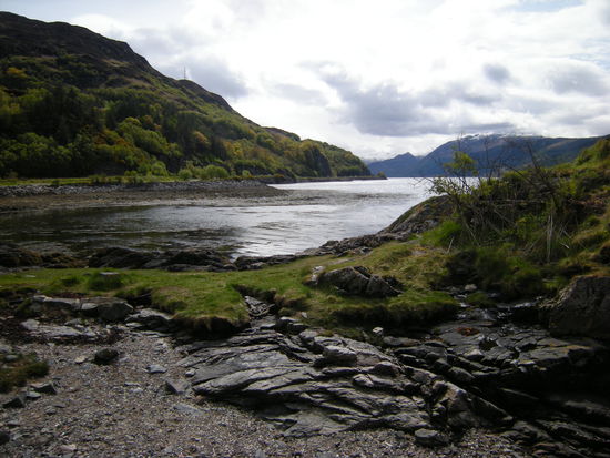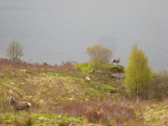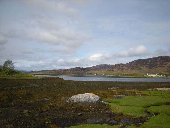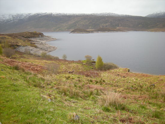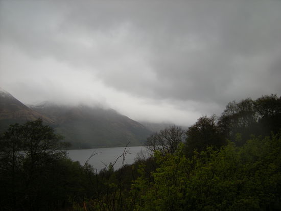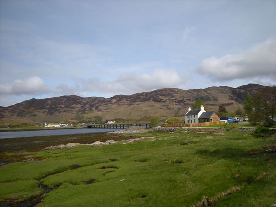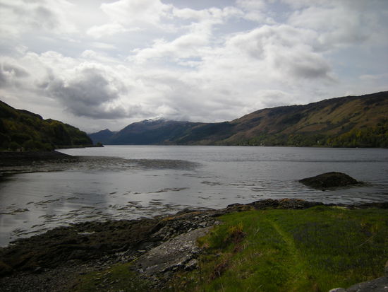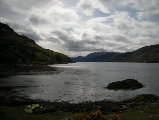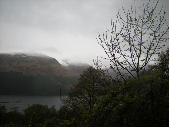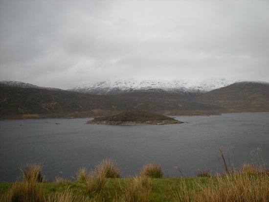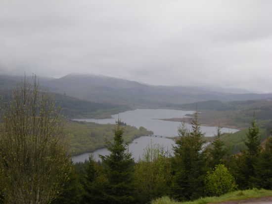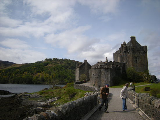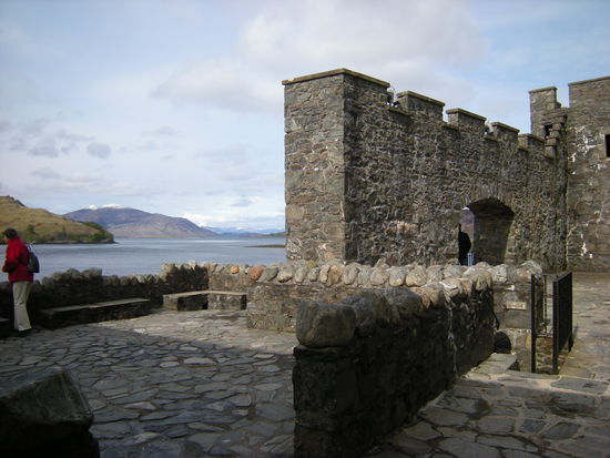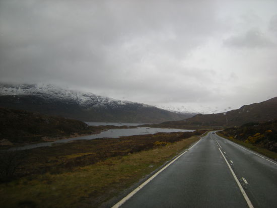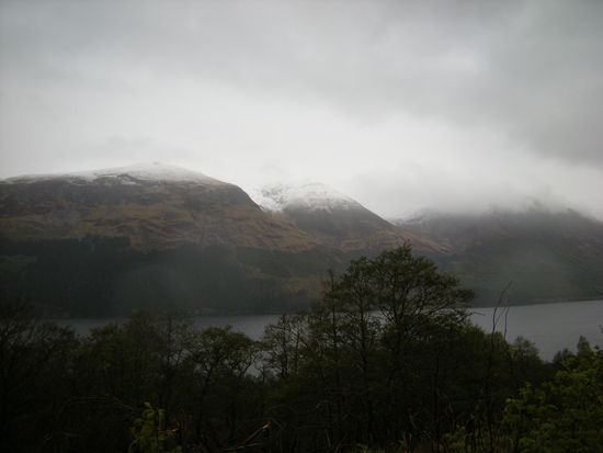 18.05. Morgens um halb sechs Ortszeit schaue ich auf den Wecker und oh Wunder... es regnet... immer noch. Das Thermometer zeigt 2 Grad und auf dem Ben Nevis liegt Schnee. Sie hatten den ganzen Winter keinen Schnee. Aber jetzt sind ja wir da. Als ich den Kopf aus dem Womo strecke, schwebt mein Atem in der eisigen Luft. Bei dieser Kälte verzichte ich dankend auf eine Dusche und aktiviere den Waschlappen. Wir setzen unsere Fahrt fort Richtung Inverness, dann biegen wir links ab und besuchen Eilean Donan Castle. Die Fahrt dorthin ist ein Märchen. Auf der einen Seite schroffe hohe Berge, deren Gipfel schneebedeckt sind, auf der anderen Seite tief eingeschnitten Seen, Flüsse, Bäche. Man kann diese vielen Eindrücke der Superlative kaum beschreiben.