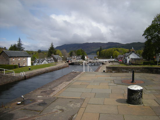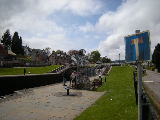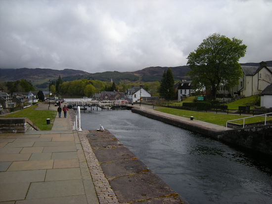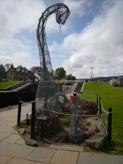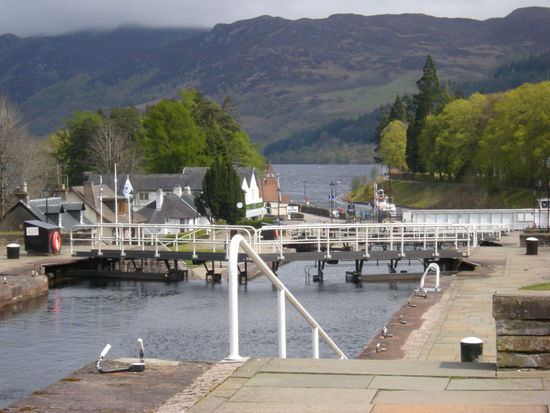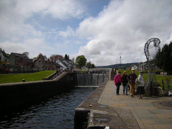 . Je näher wir der Küste kommen, desto heller wird es und als wir das Castle erreichen scheint sogar die Sonne. Die Burg auf einer kleinen Insel im Loch wurde Anfang des 20.Jh. renoviert und wir besuchen sie natürlich. 10 Pf für Senioren, kein Pappenstiel. Natürlich gibt es außer der Küche kaum etwas Außergewöhnliches zu sehen, doch die ist wirklich ein Highlight. Sogar ein Kochbuch ist ausgestellt. Es hat mehr als drei Blätter, wie mein Liebster immer behauptet hat. Wir nehmen den gleichen Weg durch das einmalige Tal zurück, besichtigen Fort Augustus und die dortige Schleusentreppe und fahren dann nur ein kurzes Stück zum einzigen Campingplatz am Loch Ness. Meine Karten wollen sie natürlich nicht, sie wären auch so billig. 19 Pf verlangt der Abkömmling von Nessie. Doch wir stehen direkt am Loch und das ist es wert. Natürlich regnet es bereits wieder.