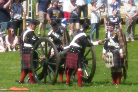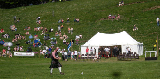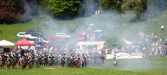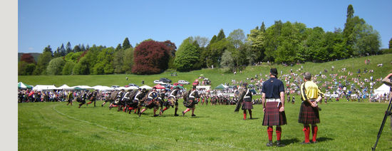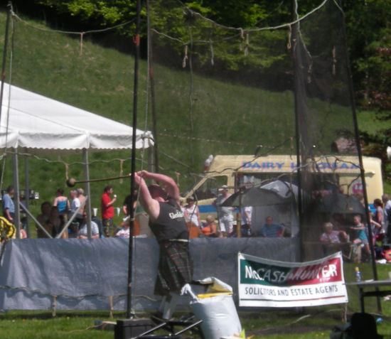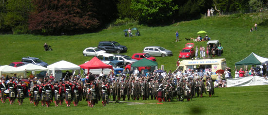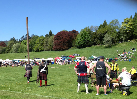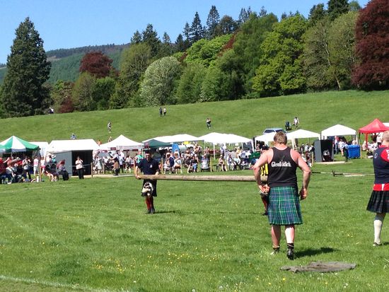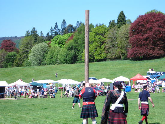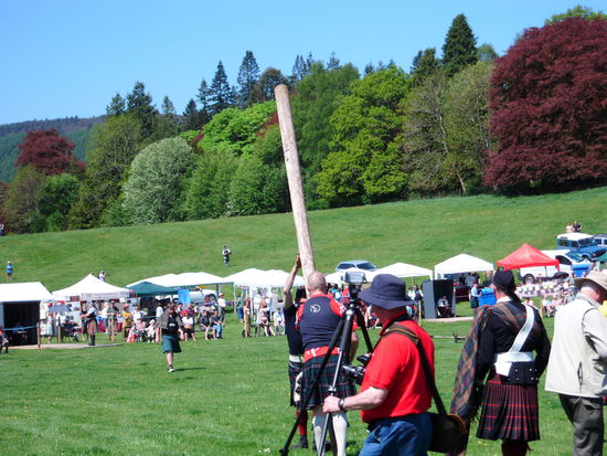 27.05. Heute starteten die Spiele. Wir sind erst zur offiziellen Eröffnung hin gegangen. Ein Mordsspektakel wie ein Jahrmarkt mit Hammerwerfen, Kugelstoßen, Baumstammwerfen, Spiele für die Zuschauer, Mädchentanzgruppen und vielen Pipers. Auch die Highlander-Armee ist wieder einmarschiert. Manfred grinste sich eins. Jeder "Soldat" hatte einen anderen Schritt und die Gewehre waren geschultert wie Kraut und Rüben. Unverkennbar keine Soldaten, sondern Gärtner, Kellner, Verkäufer, Bedienstete des Dukes, die man für das Fest in eine Uniform gesteckt hatte. Dafür bekamen sie ja auch jeder einen Orden. Wie bei uns an Karneval.