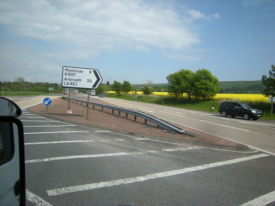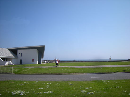 Manfred hat sehr geduldig gewartet, dann ging es weiter zum einem größeren Einkauf in einen Tesco. Imbiss von der warmen Theke mit Bratwurst und Sparerips, dann auf Richtung Aberdeen. Wir kommen an riesigen Erdbeerplantagen vorbei, alle unter Plastikzelten. Und an genauso so riesigen Herden von schwarzen Angus-Rindern. Leider war unmittelbar an der Küste kein Rastplatz zu finden. 40 km vor Aberdeen fahren wir einem Camping-Schild nach und finden auch gleich einen Platz. (18,50) Eine Dame kommt angerannt, weist uns ein. Sie später nach einem fußnahen Parkplatz zur Innenstadt in Aberdeen zu fragen war fast ein Fehler. Es war als würde man einen Schalter umlegen, sie war vor lauter Hilfsbereitschaft kaum noch abzustellen. Später hat uns ihr Mann sogar eine Zeichnung gemacht, wo die Parkplätze in der Nähe des Fischereihafens in Aberdeen sind. Einfach ungeheuer, diese Hilfsbereitschaft der Leute hier.