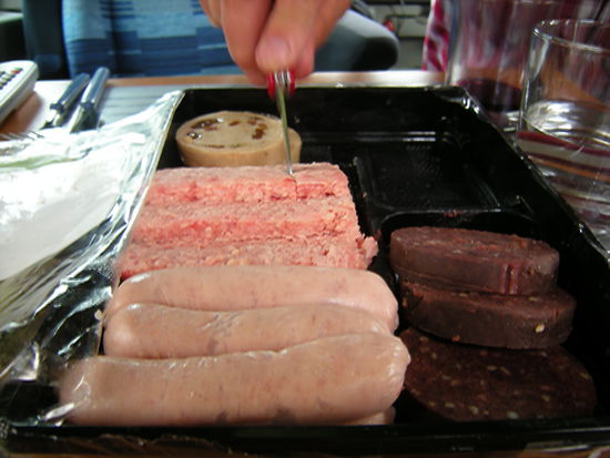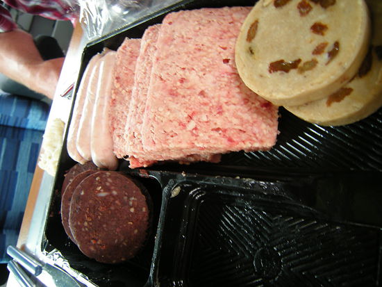 Natürlich haben wir bei Tesco alles möglich und unmögliche zum Essen gekauft. Geräucherte Schweinshaxe für Stangenbohnen, ein Frühstückspaket mit ziemlich undefinierbarem Inhalt. Würstchen, Blutwurst, was Helles, das ausgesehen hat wie helle Hacksteaks und gebraten auch gut geschmeckt hat, und dann noch etwas, das wohl keine Wurst war, denn es sind Rosinen drin und schmeckt nach Lebkuchen. Ich fands warm wie kalt ungewöhnlich aber nicht übel. Manfred hat zwei Rindersteaks gekauft, jedes fast ein Kilo, für 28 Pfund. Die Verkäuferin hat zweimal gefragt, ob wir das wirklich wollen. Hoffentlich hält das Wetter noch ein bisschen, dass wir sie auch grillen können, denn heute war es schon ein ganzes Stück kühler und sehr stürmisch. Wenn ich schon bei meinem Lieblingsthema bin, dann darf ich auch erwähnen, dass das Wasser in GB überall ein Traum ist. Ich musste noch nicht einmal den Wasserfilter aktivieren. Der Tee am Morgen ist glasklar. Einfach super.