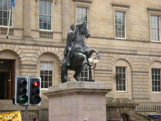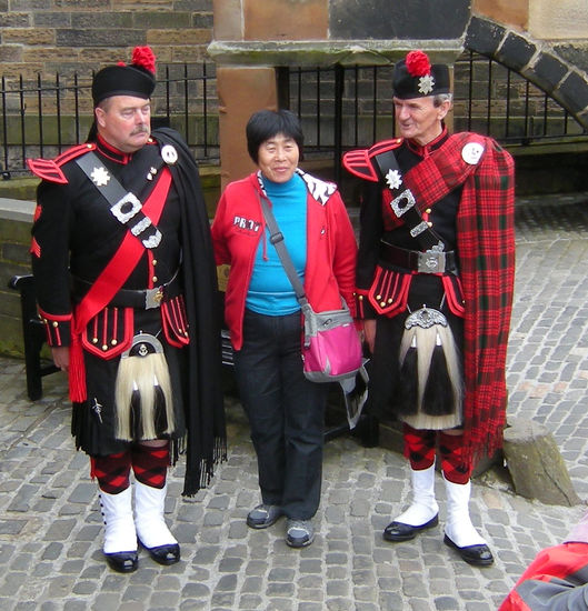 30.05. Unsere Nacht war ruhig, morgens war die Heizung fällig, da es nur 11 Grad hat. Wir nehmen die gut 50 km nach Edinburgh in Angriff. Der Verkehr ist auf der Ringautobahn wahnsinnig. Ein Unfall verursacht auch noch einen Stau. Sie nennen diese Ringautobahn, die rund um Edinburgh läuft Bypass. Unser Navi dirigiert uns perfekt nach Mortonhall auf den Caravanpark. 22,75 greifen mir die Halsabschneider ab. Ich zahle erst mal für eine Nacht. Eine halbe Stunde später stehen wir schon am Bus. Der Verkehr in der Stadt ist das reine Chaos. Die Hauptstraße, die Prince Road, ist aufgerissen und gesperrt. Eigentlich ist die ganze Innenstadt eine Baustelle. Menschenmassen drücken sich durch die Straßen und strömen auf den Burgberg. Edinburgh Castle war eine Festung, eine Garnison. Entsprechend sind die Gebäude und die Ausstellung. Kanonen, Kriegsspielzeug, Kriegsausstellung zurück bis zum 16. Jh. Waterloo, Napoleon, Amerikanischer Befreiungskampf, etc. Kriegerdenkmäler, Halle der Gefallenen aller Regimenter, Kriegsgefangenen-Keller besonders aus der Zeit des Amerikanischen Befreiungskrieges. Aber auch die schottischen Kronjuwelen und die Räume in denen Maria Stuart ihren einzigen Sohn geboren hat, der später König von Schottland und England wurde. Allerding sind die Räume unmöbliert. Nach dem stundenlangen auf und ab tun uns sämtliche Knochen weh und wir sind heil froh wieder im Bus zu sitzen. Doch wir haben großes Glück, dass wir mit dem Bus auch ankommen, denn er geht an jeder Haltestelle aus und will dann nicht wieder anspringen. Der Fahrer ist ein Nervenbündel. Und wir sind heilfroh, dass wir aus dem pfeifenden Klapperding doch noch raus- und ankommen. Und zur Krönung... abends kein Fernsehen, weil ein Baum im Weg steht