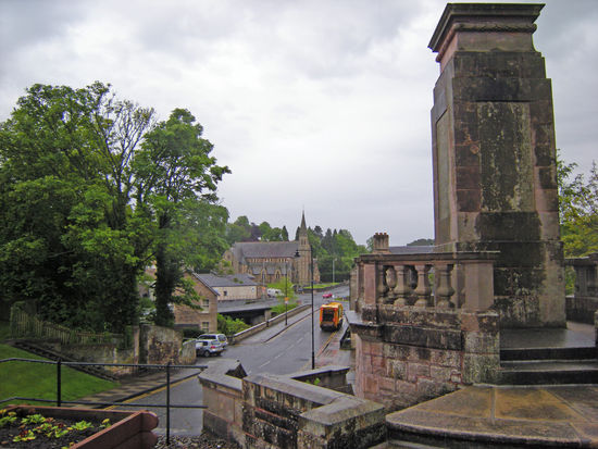 Diesen Gefallen konnte ich leider Mr. Scott nicht tun. Es regnet, als wir auf den Parkplatz vor der Abbey fahren. Ich steige aus um die Abtei-Ruine zu besichtigen. Sie wollen 5 Pfund Eintritt. Sorry, die spinnen die Schotten. Ich bin nur einige Minuten weg um durch den Zaun ein paar Bilder zu schießen, da ruft Manfred schon, dass ich zurück kommen soll, weil ein Aufseher ihn vertreiben wollte. Keine Womos auf dem Parkplatz. Blödmänner. Also weiter zur Jedburgh Abbey.
