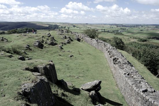 Ein tolles Land, schade, dass es hinter uns liegt. Doch immer noch ist die Landschaft einmalig. Eine lange Strecke fahren wir am Hadrian's Wall entlang. Auf jedem Parkplatz entlang der Strecke steht ein Parkautomat. Und natürlich no overnight parking. Ein Spaziergang am Wall fällt eh aus bei dem Sauwetter, also suchen wir uns einen Campingplatz. Gerne würden wir zwei Tage bleiben, doch übers Wochenende sind sie voll belegt. Der Bank-Feiertag wurde wegen des Jubiläums der Queen auf dieses Wochenende gelegt, außerdem gab's auch noch Schulferien und morgen erwartet er 12 deutsche Camp-Cars.