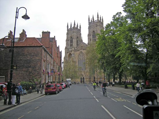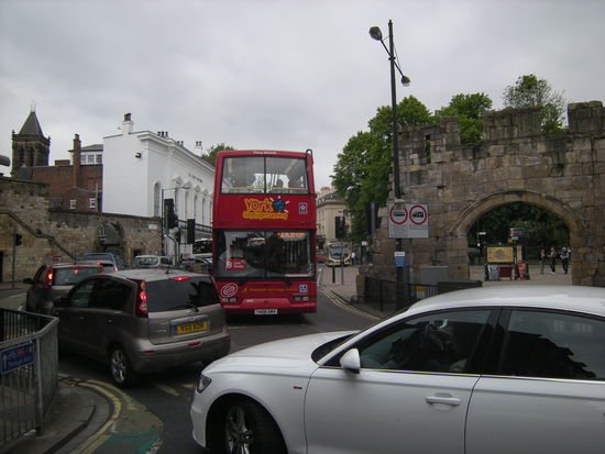 Der Verkehr auf der Autobahn ist unbeschreiblich. Ich glaube nicht, dass 100 Wohnwagengespanne reichen, die uns entgegen kommen. Kein Wunder, dass alles besetzt ist. Leider hat auch York seine Parkplätze mit Barrieren vor dem Einfahren von höheren Fahrzeugen geschützt. Auf den Busparkplatz dürfen wir nicht, also bleibt uns nur die Durchfahrt durch den mit Autos und Touristen vollgestopften Ort. Er liegt am Fluss Ouse, nahe der Mündung des Foss in die Ouse. York wird auch die "Ewige Stadt" genannt und ist berühmt für seine historischen Gebäude. Schon zur Römerzeit spielte sie als Hauptstadt Nordbritanniens unter dem Namen Eboracum, ab 237 n. Chr. als Colonia Eboracensium eine bedeutende Rolle. Als der Vater von Kaiser Konstantin dem Großen, Constantius Chlorus, in York im Jahre 306 n. Chr. starb, wurde Konstantin dort von seinen Truppen zum Kaiser ausgerufen.
