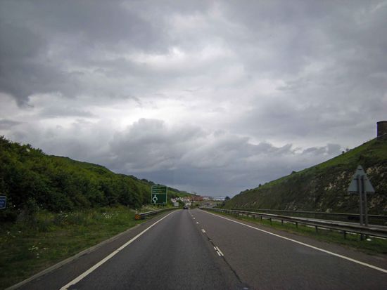 Wir fahren weiter nach Arundel. Ich möchte doch noch das Schloss besichtigen. Aber... auch das ist mir nicht vergönnt. Das ganze Dorf ist zugeparkt, der Parkplatz bis zum letzten Platz belegt, wir haben keine Chance. Ganz England ist in Jahrmarktstimmung und auf den Beinen. Wenn das schon wegen des Queen-Jubiläums so schlimm ist, wie wird das erst kurz vor der Olympiade sein? Und dazwischen ist auch noch Madams Geburtstagsparade. Ich weiß nicht was schlimmer ist, der ruhende oder der rollende Verkehr. Manfred ist frustig. Wir setzten uns auf die Autobahn und entscheiden spontan diese Reise zu beenden und auf London und Canterbury schweren Herzens zu verzichten. Sie laufen uns ja nicht weg und wir kommen bestimmt noch mal her. Durch die Ortschaften ist der Verkehr unbeschreiblich. Hätten wir nur den großen Umweg über die Autobahn genommen. Wir stehen mehr nach Dover als wir fahren. Es wird 17 Uhr Ortszeit bis wir am Fähr-Terminal einchecken. Ohne Worte wird unsere Überfahrt umgebucht. Um halb 6 stehen wir auf der Fähre. Um halb neun unserer Zeit stehen wir in Calais auf dem Stellplatz. Und mit dem letzten Bild von Dover hat mein Fotoapparat seine Dienste eingestellt. Objektivfehler!