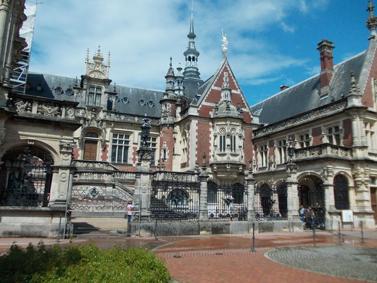 Auch hier sind die Womo-Stellplätze direkt am Hafen. Stehen kostet nichts, es gibt aber auch keinerlei Service. Ein absolutes Highlight ist das Palais Bénedictine. Ein ehemaliges Benediktiner Kloster in dem heute noch Kräuter-Likör produziert wird. Das Gebäude ist ein Traum und beherbergt außer der Destellerie auch noch ein Museum. Richtig ruhig ist der Stellplatz natürlich nicht, immerhin stehen wir ja im Fischereihafen. Tatsächlich kommt nachts kurz nach 0 Uhr ein Fischkutter und entlädt seine Fracht. Natürlich laufen Motor und Stromaggregat, der Kran schnurrt und das Entladen der Kisten und die Kommentare der Mannschaft sind auch nicht leise. Der ganze Kai ist taghell erleuchtet, damit die Arbeiter auch sehen was sie tun. Ich könnte ohne Licht im Bett lesen, würden wir nicht beide im Volant sitzen und zuschauen was draußen abgeht. Schlafen kann man eh vergessen. Ein Gabelstapler fährt ständig hin und her. Und schafft die Fischkisten in die Kühlung. Das Ganze dauert bis 2 Uhr, dann düst der Kutter mit der Flut wieder von dannen.