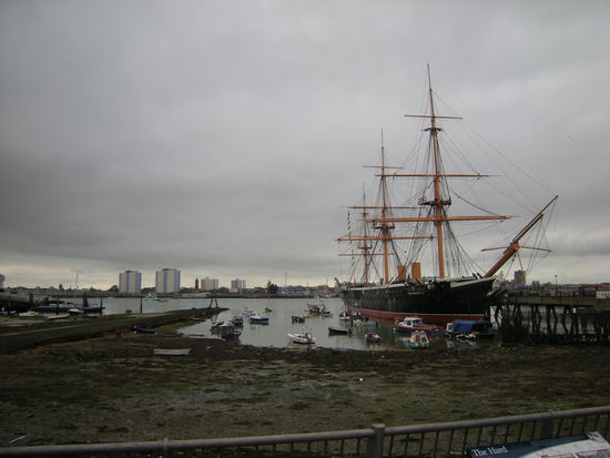 Wir haben dazu gelernt und geben eine Straße aus dem Stadtplan ein. Unser Navi führt uns perfekt zu einem Parkplatz. Ich ziehe nach einer kurzen Orientierung aus dem Automaten zwei Parkscheine, denn wir belegen natürlich auch zwei Parkplätze. Bekannte von uns haben mal 30 Pfund Strafe bezahlt, weil sie nur einen Zettel gezogen hatten. Dann machen wir einen Spaziergang durch das Hafenviertel und anschließend gehen wir in den Historical Harbor, kaufen zwei Tickets a 18,50 um die Warrior und die Victory zu sehen. Die Mary Rose, das erste Stahlboot, das Heinrich VIII. bauen ließ, wird derzeit renoviert und kann nicht besichtigt werden. Portsmouth Historic Dockyard ist das größte Marinemuseum der Welt. Es beherbergt mehrere historische Schiffe der englischen Marine, unter anderem die Mary Rose aus dem Jahr 1510 und die HMS Victory, das Flagschiff Admiral Nelsons in der Schlacht von Trafalgar. Zum Historic Dockyard gehört auch das Royal Naval Museum, das eine Vielzahl von Ausstellungsstücken zur maritimen Geschichte Englands beherbergt.