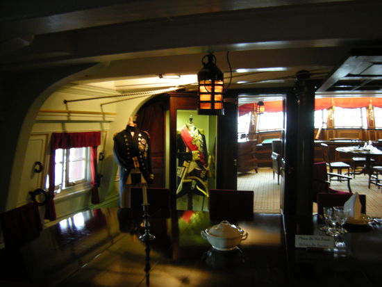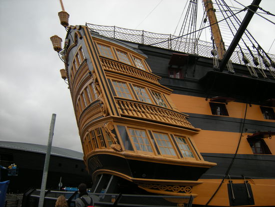 In der Warrior sind wir fasziniert von der riesigen Dampfmaschine. Als ein älterer Herr das sieht, nimmt er uns sofort unter seine Fittiche und erklärt uns alles was technisch interessierte Bootsfahrer gerne wissen wollen. Ich muss immer wieder feststellen, dass sich viele alte Briten sozial und geschichtlich engagieren, in Museen, Kirchen, Castles. In der Victory mache ich mich dann ein bisschen unbeliebt bei einem schon arrogant blickenden english snob. Ich kann nicht glauben, grinse ich ihn an, dass in einem segelnden Kriegsschiff wirklich Tische standen mit Rollen an den Tischbeinen. Das hat ihn schier aus der Fassung gebracht. Das Schiff wäre jetzt ein Museum, da müsse man über solche Dinge wegsehen...Schade finde ich, authentisch wäre mir persönlich lieber. Wunderschön ist es allemal.