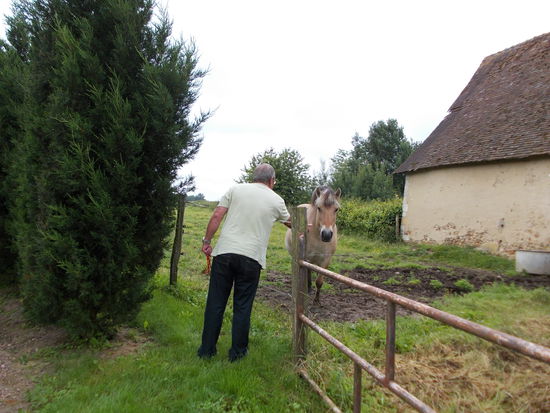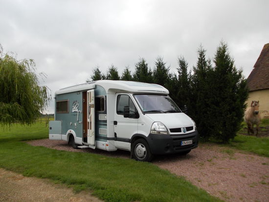 Der Platz neben dem Pferdestall ist wunderschön, sauber und gepflegt, eingegrenzt mit blühenden Blumen und Büschen. Ringsum sind riesige Kornfelder und wirklich mannshohe Rapsfelder. Raps in dieser Höhe ist mir noch nie untergekommen. Leider haben sie keine Duschen. Doch ich habe heute Morgen im Womo geduscht, wenns auch anschließend ein bisschen viel Putzarbeit macht. Madam lädt uns abends zu einem Aperitif ein. Ein leckerer Likör aus Kirschblättern. Hab ich noch nie gehört, dass man auch aus den Blättern des Kirschbaums was brauen kann. Natürlich kaufen wir auch einen Rotwein der Region und eine hausgemachte Paté.