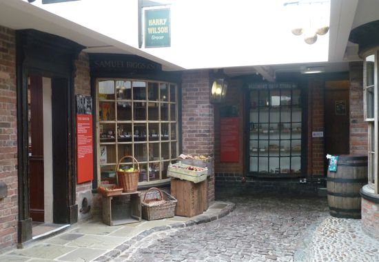 Eine besondere Attraktion ist die im Inneren der Gebäude aufgebaute kleine Dorfstraße mit Läden, Pub und Friseursalon