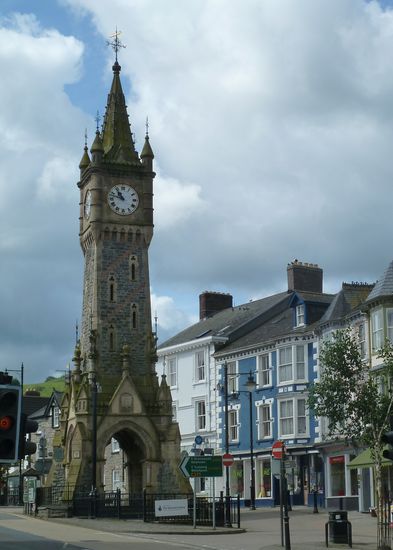 Einen unübersehbaren Akzent im Stadtbild von Machynlleth setzt an der Kreuzung der beiden Hauptstraßen ein neugotischer Uhrturm aus viktorianischer Zeit. Er wurde im Jahr 1873 wie in so vielen walisischen und englischen Dörfern anstelle des traditionellen Marktkreuzes errichtet, in diesem Fall zu Ehren der Markgrafen von Londonderry. Die Familie hatte ein Landhaus in dem Ort geerbt, das sich heute im Besitz der Stadt befindet.