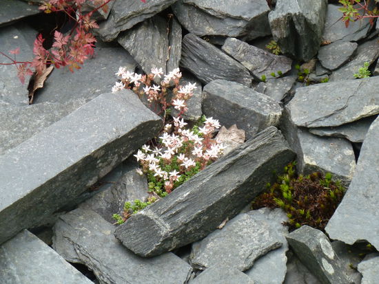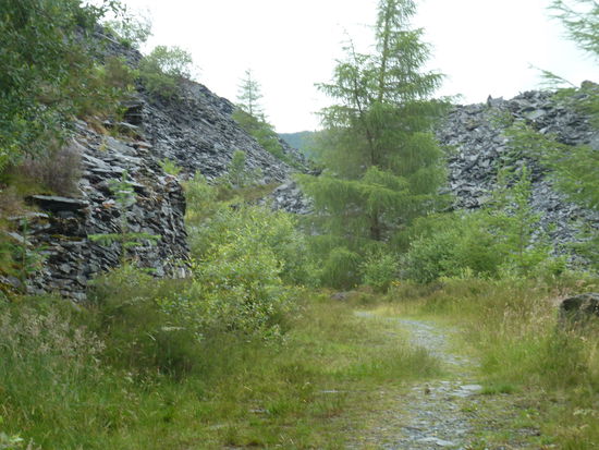 Etwas weiter talaufwärts finden wir noch einen interessanten Trail durch die Abraumhalde eines Schieferbergwerks.