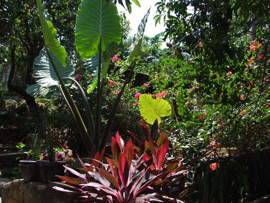 Der wunderschöne Garten unseres Guest Hauses - Gardena -. Alles blüht, riesige Palmwedel, riesige tropische Sauerampfer. Wirklich gigantisch.