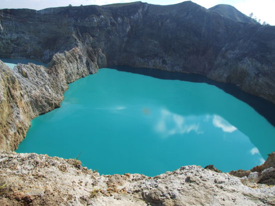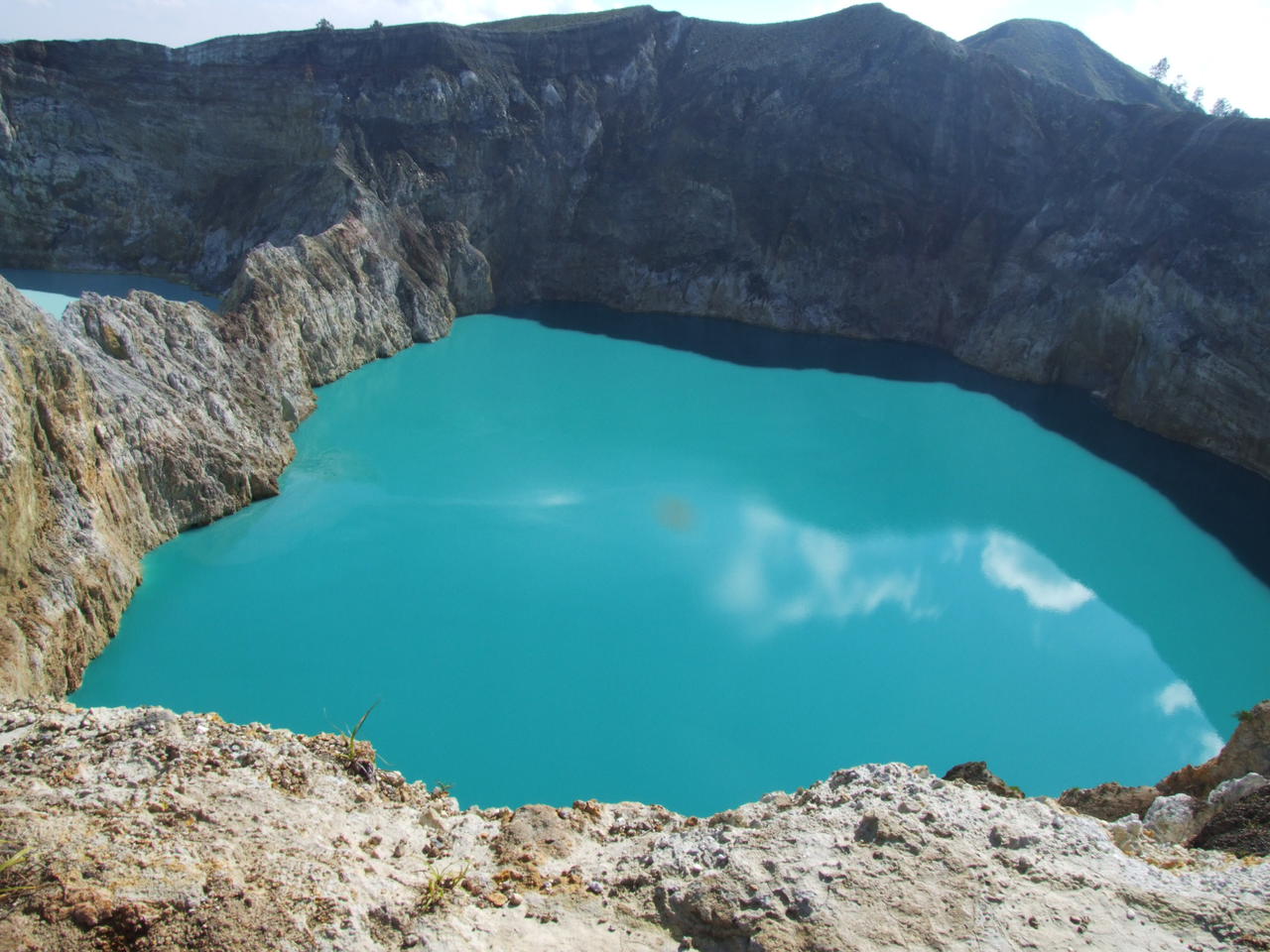 Die drei Seen um den Vulkan wechseln aufgrund von gelösten Mineralien im Abstand von mehreren Jahren ihre Farbe von Schwarz zu Türkis, Rotbraun oder Grün. Der See im Westen heißt Tiwi Ata Mbupu (zu deutsch: See der Alten), die beiden anderen tragen die Namen Tiwu Nua Muri Kooh Tai (deutsch: See der Jungen und Mädchen) und Tiwu Ata Polo (deutsch: Verzauberter See). Wir sahen die Seen in den Farben - schwarz, hellblau (eine Art wirklich leuchtendem Türkis) und Dunkelgrün. Die Einheimischen des am Fuße des Berges liegenden Dorfes Moni glauben, dass die Seelen der Verstorbenen in diese Seen wandern.