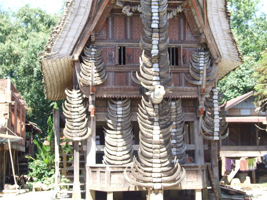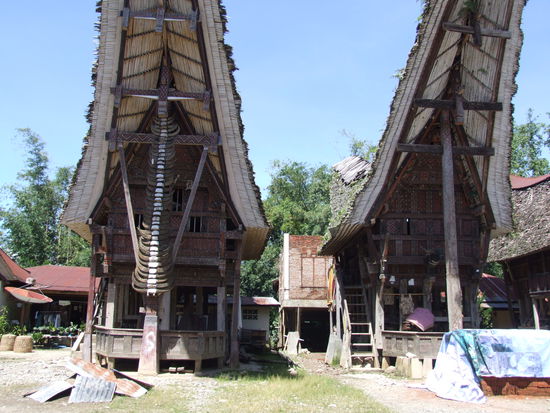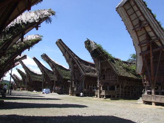 Die eindrücklichen, auffälligen und bootsförmigen Toraja-Häuser
