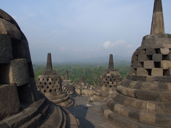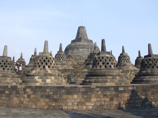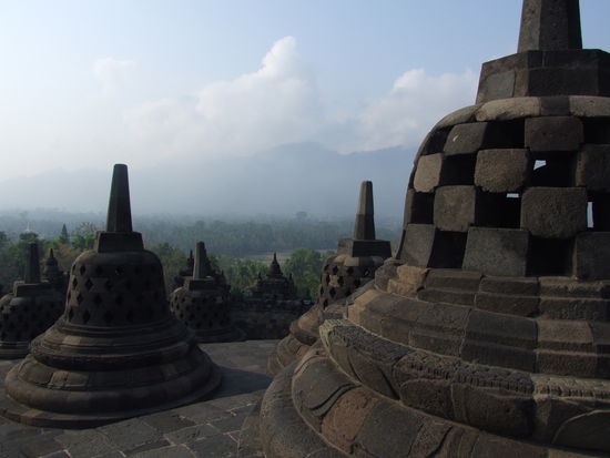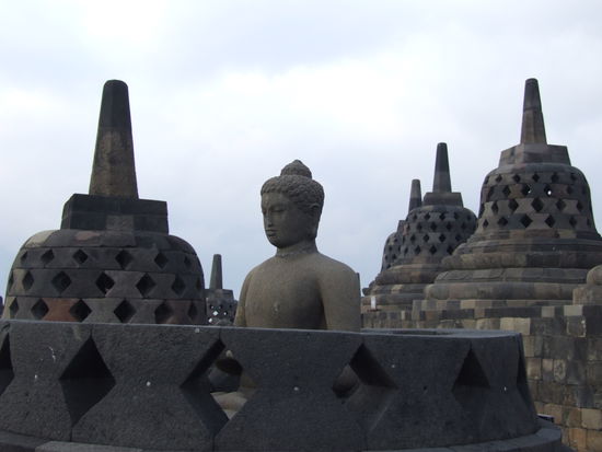Borobudur ein kunsthistorisches Meisterwerk buddhistischer Baukunst in der Nähe des tropischen Yogjakarta am Fuße des Merapi gelegen. Umrandet von Palmen türmen sich über 2 Millionen Steinquader in Form einer quadratischen Steinpyramide auf. Einzigartig schön. Insgesamt neun Stockwerke gibt es zu entdecken. Borobudur ist einzigartig und unvergesslich. Ich war hellauf begeistert.