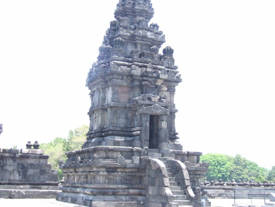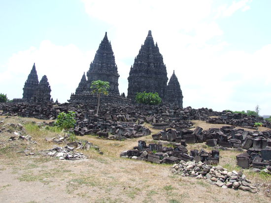 Prambanan ist die größte hinduistische Tempelanlage Indonesiens und befindet sich etwa 18 km östlich von Yogyakarta. Charakteristisch ist die hohe und spitze Bauform, die typisch für hinduistische Tempel ist, sowie die strenge Anordnung zahlreicher Einzeltempel um das 47 m hohe Hauptgebäude in der Mitte.