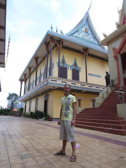 Den naechsten Tag haben wir dann mit Sightseeing verbracht, denn in Phnom Penh gibt es einige schoene Tempel sowie den Koenigspalast zu sehen. Dieser war mit viel Schwarz geschmueckt und so erfuhren wir, dass vor 3 Wochen der alte Koenig gestorben ist. Auch wenn sein Sohn die Geschaefte schon vor einigen Jahren uebernommen hat, war er sehr beliebt im Land und die Khmer waren in aufrichtiger Trauer.