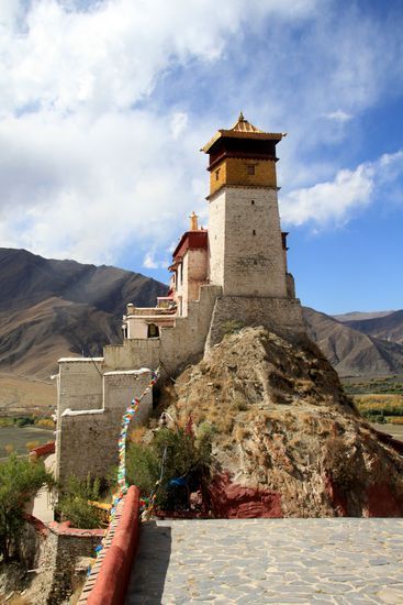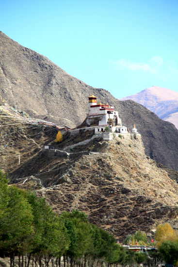 Anschließend sind wir ein kleines Stück aus Tsetang rausgefahren um den Yumbu Lakang zu besichtigen, eine Art Tempelburg auf einem Hügelrücken. Das ehemals älteste Gebäude Tibets ist wie so vieles in Tibet von den Chinesen zerstört aber später, ín den 80ern wieder originalgetreu aufgebaut worden.