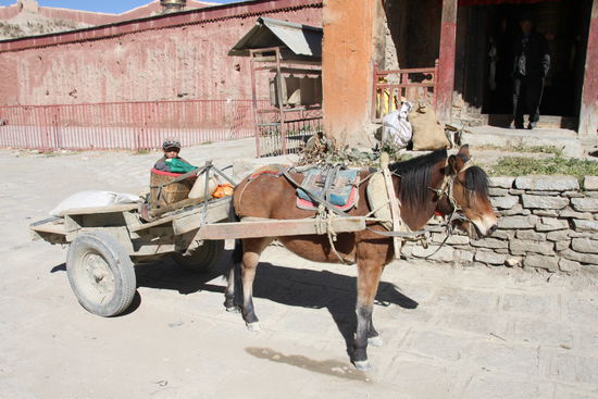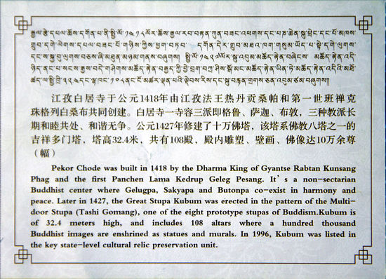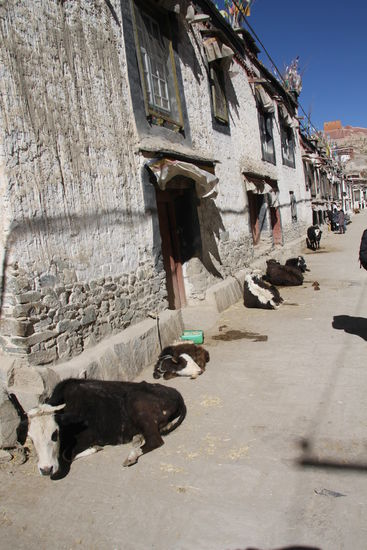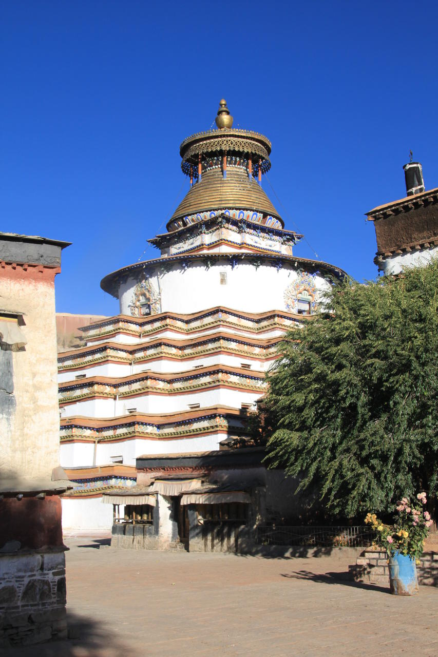 Neben der netten Altstadt ist die Hauptsehenswürdigkeit das Kloster Pelkhor Chöde mit dem Kumbum Chörten. Das ist eine Stupe in der auf sieben Etagen rundherum Kammern mit Buddhas, Bodhisattvas und andere wichtige Persönlichkeiten untergebracht sind. Der Eintritt zum Kloster kostet 40 Yuan. Für das Fotografieren werden am Eingang zum Chörten noch einmal 15 Yuan fällig, was ausnahmsweise einmal recht günstig ist.