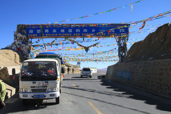 Als wir am nächsten morgen den Bus stürmen - nichts wie weg hier - weigert der sich, zu starten. Drei Stunden braucht unser Busfahrer um ihn dann unter donnerndem Applaus und Hurrarufen doch noch zum Laufen zu bringen. Alternativen hätte es keine gegeben. Wäre er nicht angesprungen hätten wir zwingend eine weitere Nacht hier übernachten müssen. Ein Ersatzbus aus Lhasa hätte mit zwei Fahrern trotz allem 16 Stunden gebraucht.