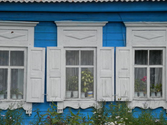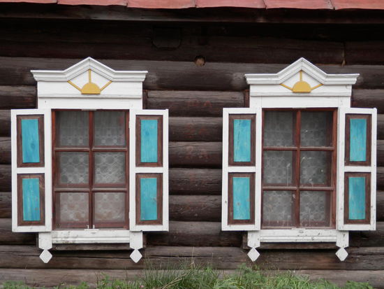 Mich reisst der erste Eindruck nicht vom Hocker, es soll aber noch anders kommen. Das Doerfchen interessiert uns dafuer umsomehr. Mit den Holzhaeusern erinnert es Walter ein wenig an Norwegen und mich begeistern die Fenster.... Wir kaufen leckeren Fisch und unseren ersten Wodka, wollten eigendlich am See Brotzeit machen, aber dann zieht ein Sturm auf und wir schlendern wieder zurueck, Richtung Bus. Da begegnet uns eine Frau, die am Bach Voegel rupft und ausnimmt. Sie sehen aus wie kleine Kraehen oder Elstern, es sei angeblich eine Delikatesse in Sibirien.( Steffi haette das sicher nicht gefallen) Auf dem Rueckweg im Bus treffen wir Matthias, er kommt aus Freiburg und ist Erzieher in einem Waldkindergarten. Er reist auch ein Jahr um die Welt und gab uns ein paar Tipps vom Baikalsee, vor allem der Insel "Olchon"